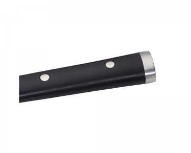- Stainless steel bolster elegantly and solidly connects handle and blade for strength and beauty.